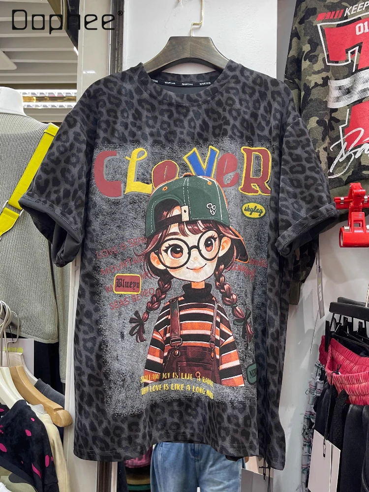 Early Autumn Fashion Trend American Casual Retro Cartoon Girl Short Sleeve T-Shirt Women Loose Casual Top Trendy Tee