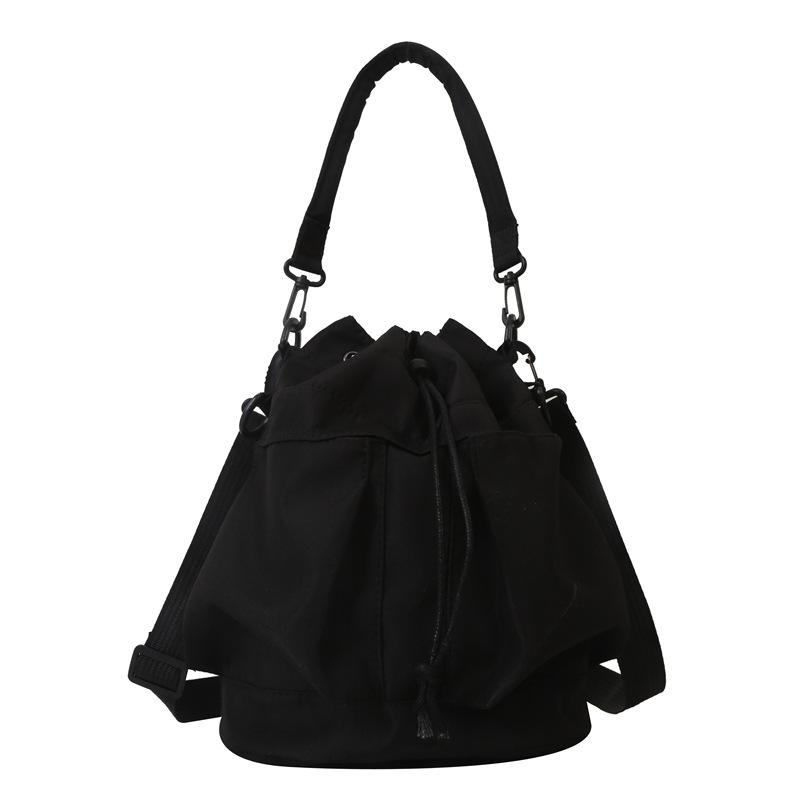 Женская сумка через плечо из нейлона, водонепроницаемая, большой емкости, повседневная сумка с завязками на шнурке, сумка через плечо, сумка-тоут One size чёрный