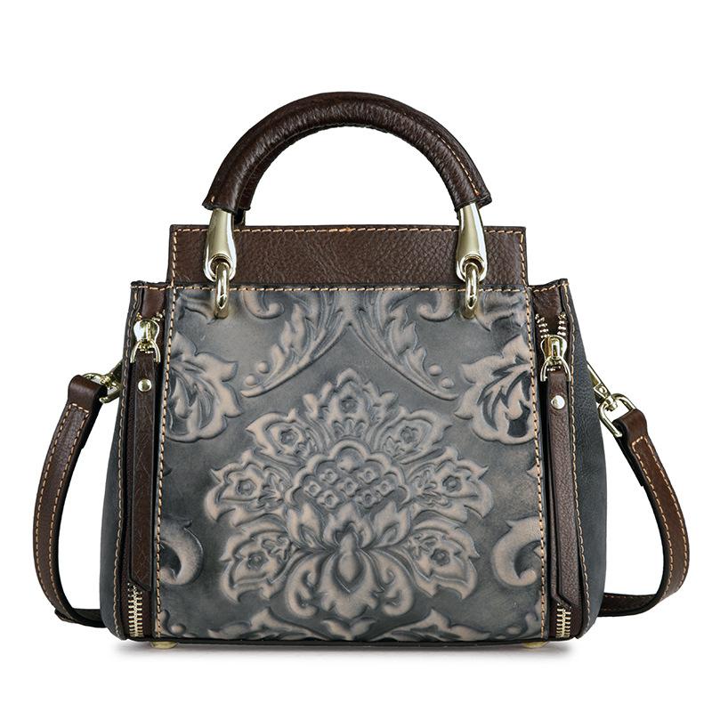 Женская сумка Johnature из натуральной кожи в стиле ретро, сумки ручной работы из натуральной яловой кожи с тиснением, сумки на плечо и через плечо черный серый