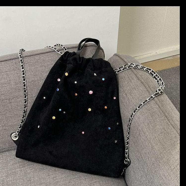 Женская сумка Niche из матового флиса с цветными драгоценными камнями, рюкзак с цепочкой и затягивающимся шнурком, портативный рюкзак чёрный
