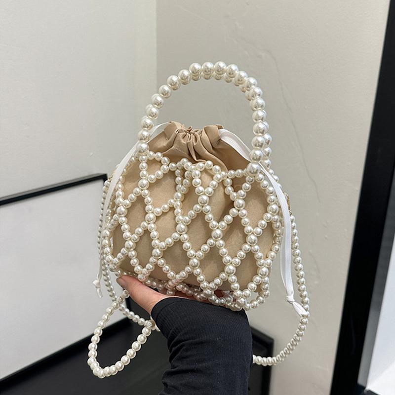 Женская сумка Pearl Маленькая мини-сумка-ведро Тканые сумки через плечо для ужина Кошелек Кошелек Сумка Женские сумки через плечо