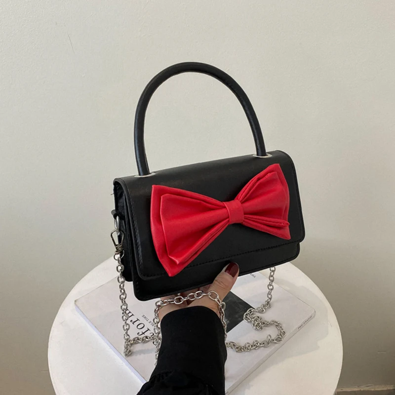 Женская сумочка, Новинка лета 2022, Корейская винтажная контрастная маленькая квадратная сумка с бантом на цепочке, женская сумка-мессенджер ...