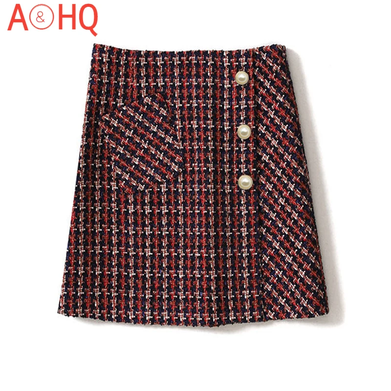 Женская твидовая юбка в красную клетку, демисезонная облегающая юбка-трапеция с высокой талией и завышенной талией, 2021