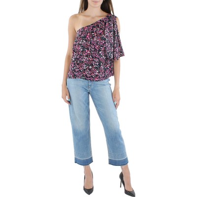 Женская темно-синяя блузка на одно плечо с принтом Aqua BHFO 9822, Navy multi