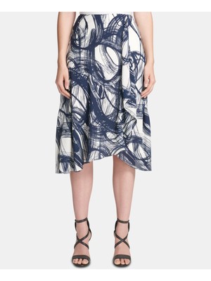 Женская темно-синяя юбка с принтом ниже колен DKNY для работы Hi-Lo, Navy