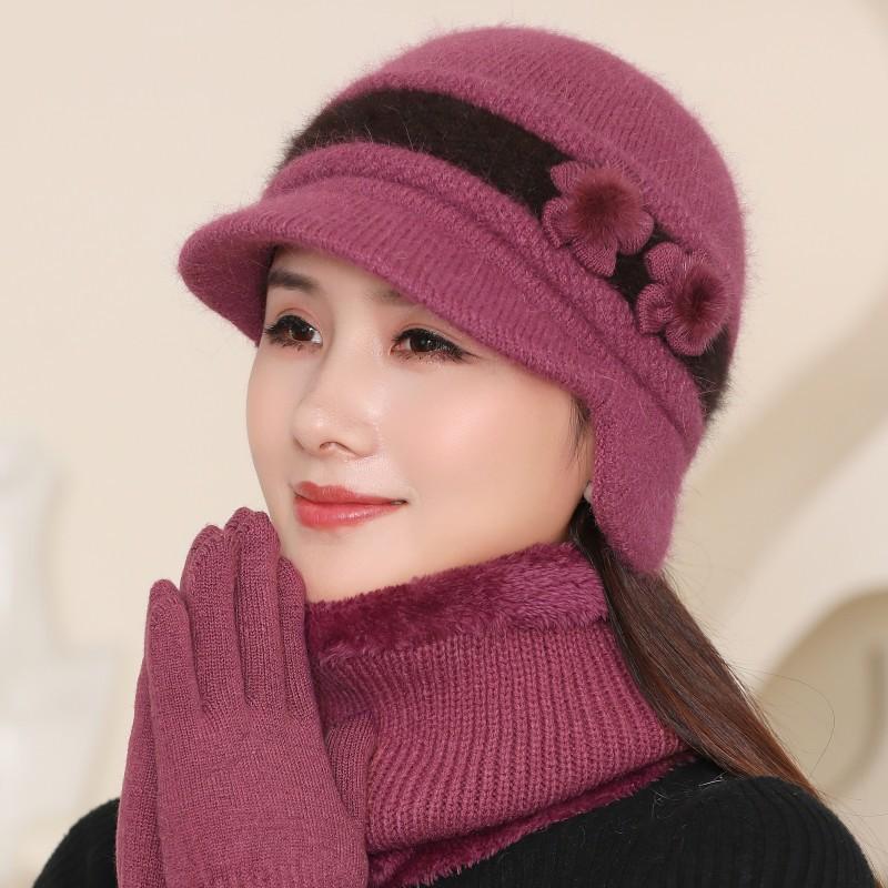 Женская теплая и пушистая шапка-бини с бантом на осень и зиму, модная и универсальная вязаная защитная шапка для ушей для мам и бабушек hat only