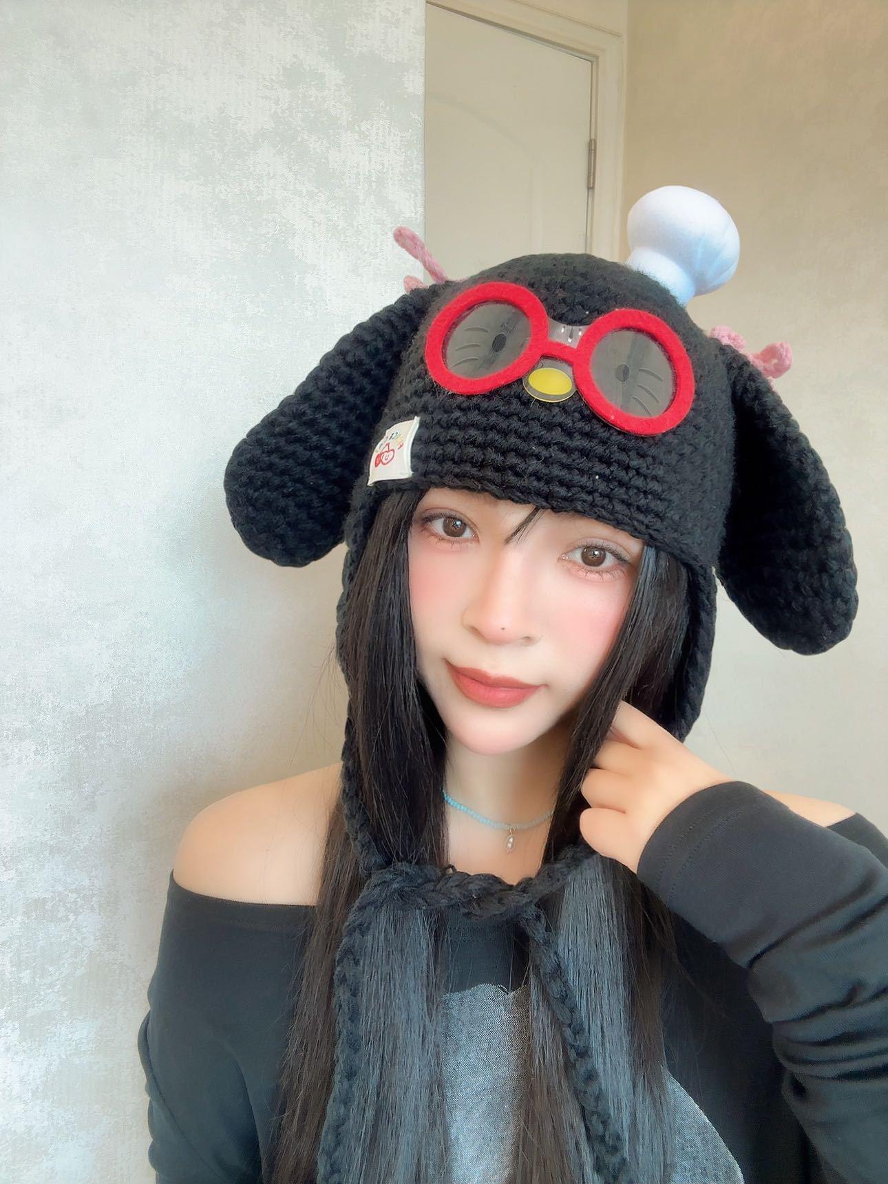 Женская теплая шерстяная шапка-бини на осень/зиму 2025 с забавными мультяшными щенячьими ушками и дизайном с очками One Size