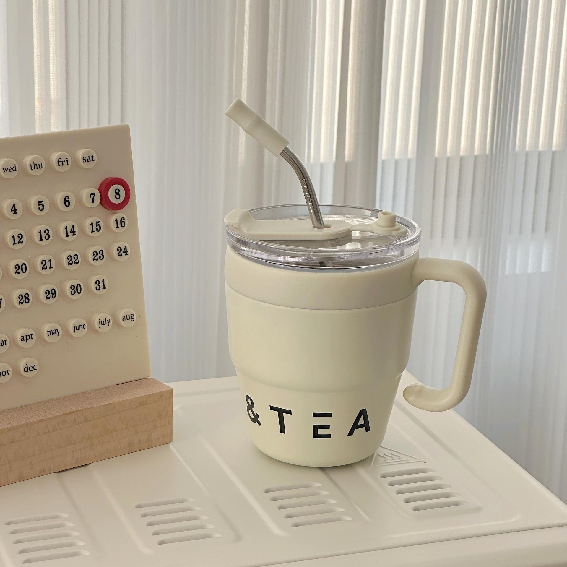 Женская термокружка из нержавеющей стали с трубочкой и высокой ценой – кружка для кофе в офисе 480ml+resin sticker+cup brush