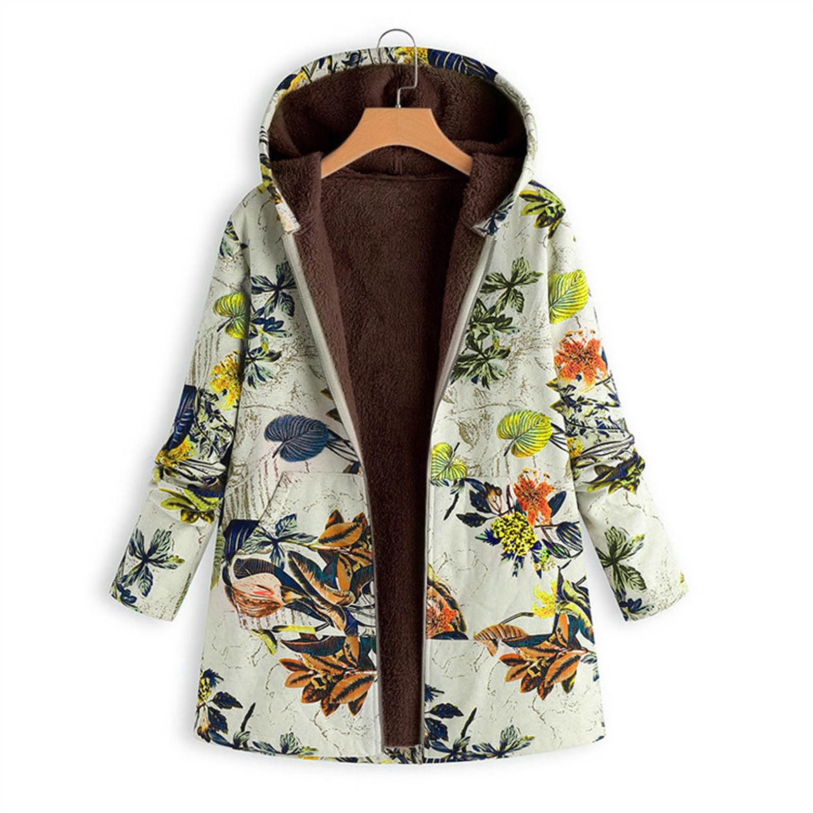 Женская толстая композитная плюшевая куртка на молнии с длинным рукавом и винтажным цветочным принтом больших размеров с капюшоном XL