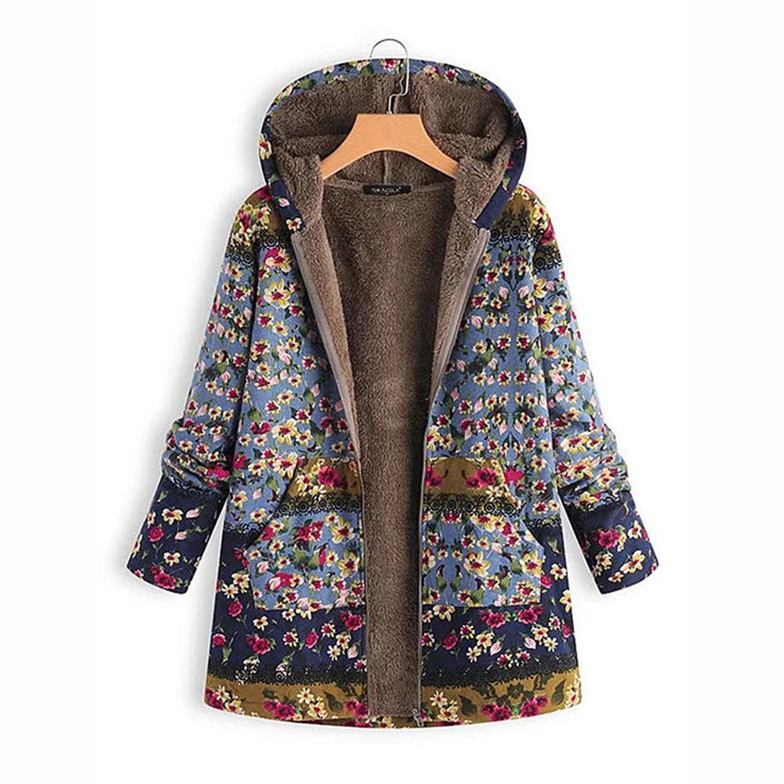 Женская толстая композитная плюшевая куртка с длинным рукавом и винтажным цветочным принтом, плюс размер, куртка с капюшоном 5XL синий