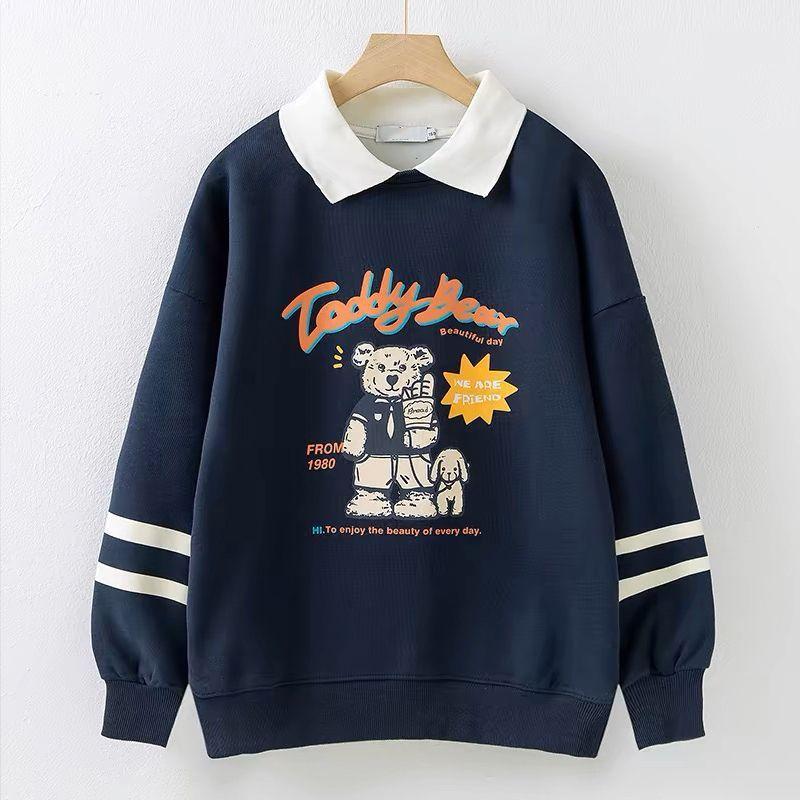 Женская толстовка для средней школы, весна и осень, модный воротник-поло, студенческий стиль, поддельные два топа S
