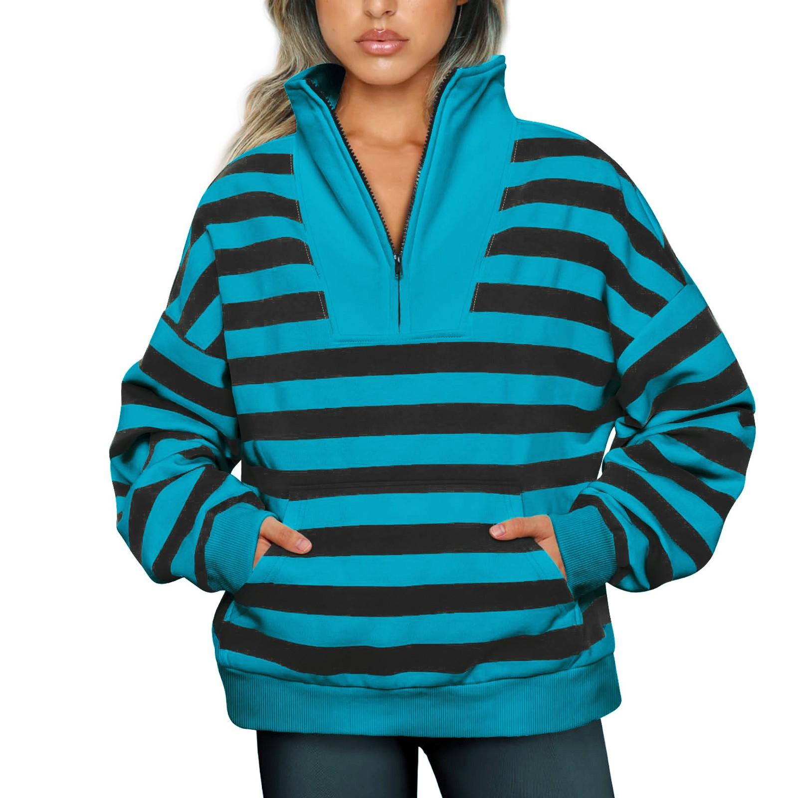 Женская толстовка на молнии с длинным рукавом и воротником на четверть молнии, пуловер, топы, осенние наряды M синий