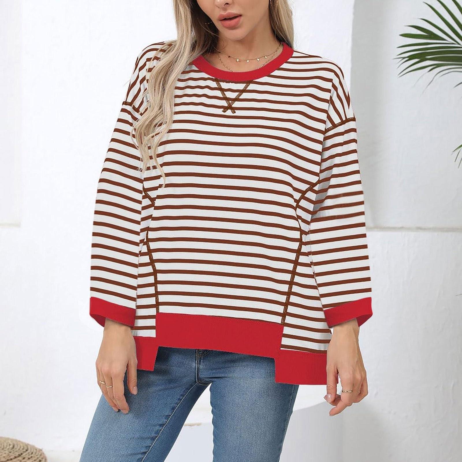Женская толстовка, повседневный свитер с круглым вырезом и длинным рукавом, женская полосатая футболка-пуловер S красный