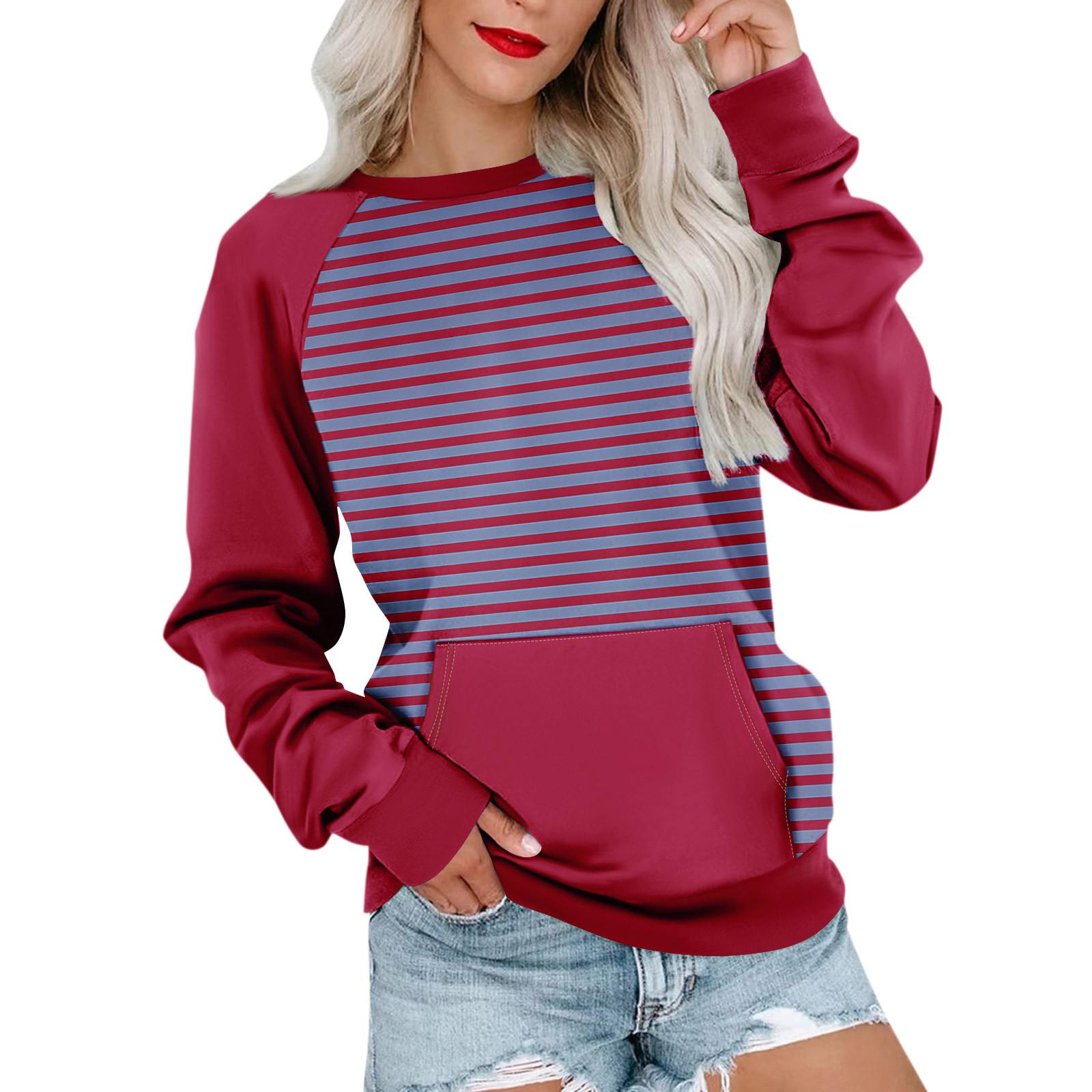 Женская толстовка с длинным рукавом, повседневная, с круглым вырезом, симпатичная, с принтом, легкая толстовка с карманом M красный