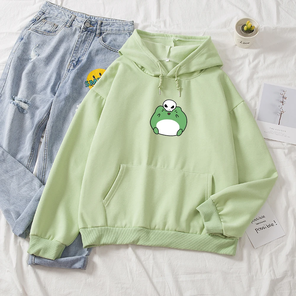 Женская толстовка с капюшоном, в Корейском стиле, с принтом лягушки, черепа