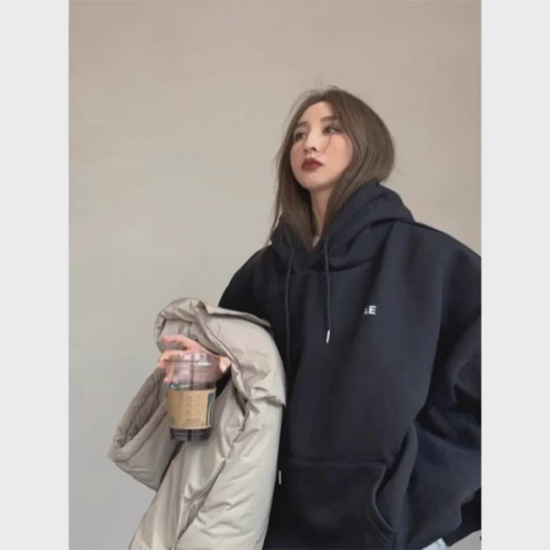 Женская толстовка с капюшоном в стиле ретро серого цвета - Plus Velvet Весна/Осень 2023 Средняя длина Свободный крой M (recommended for 80-110 lbs)