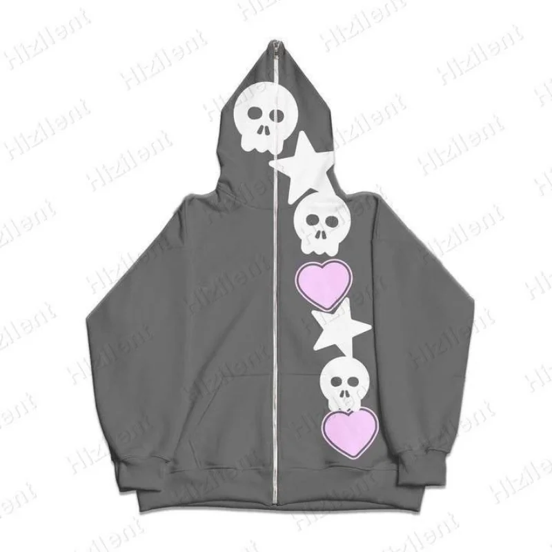 Женская толстовка с капюшоном и принтом черепа, в стиле Харадзюку