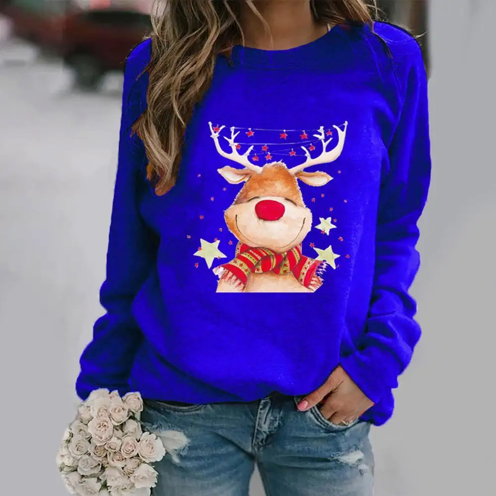 Женская толстовка с круглым вырезом, милая теплая Женская толстовка с рождественским принтом оленя и звезд