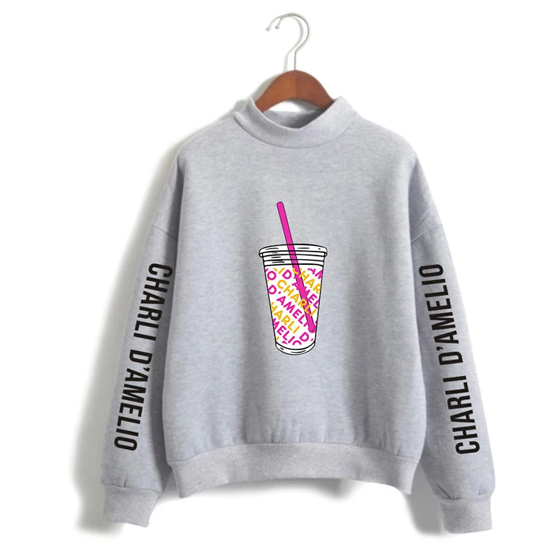 Женская толстовка Charli amielio с высоким воротником, Женская толстовка без капюшона, водолазка для девочек, одежда Charli Damelio Merch