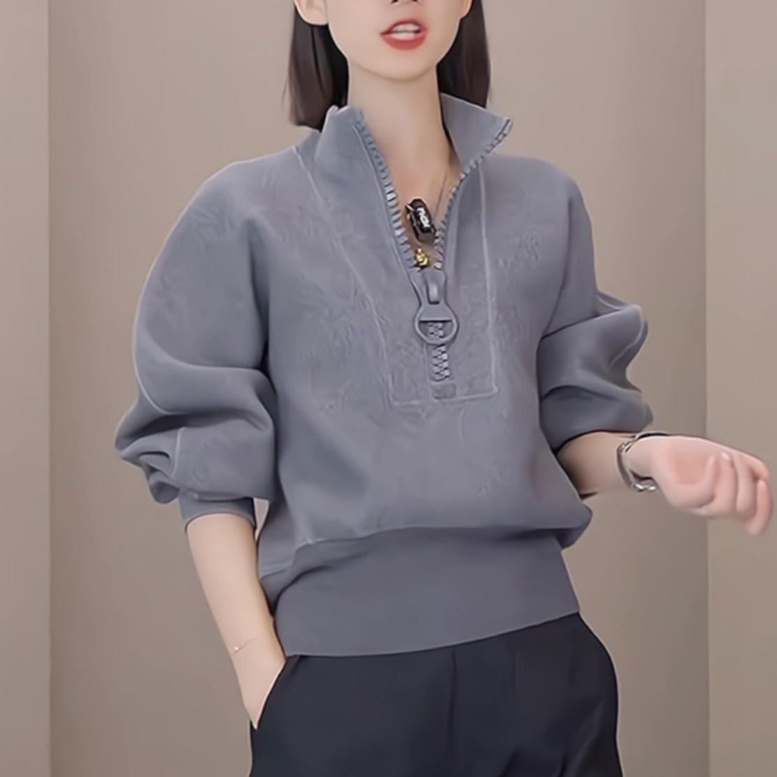 Женская тонкая короткая толстовка с высокой талией на весну и осень, однотонная, свободная, с застежкой-молнией на половину длины S