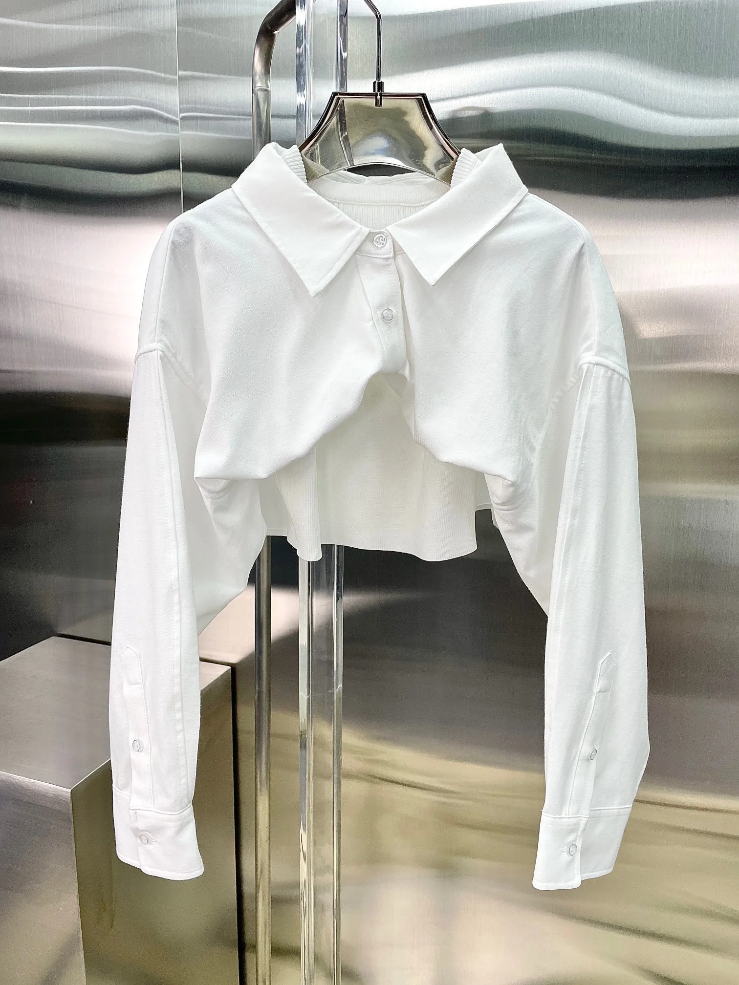 Женская трикотажная блузка с имитацией двух предметов, модель 2021 в стиле пэчворк, тонкая кофточка