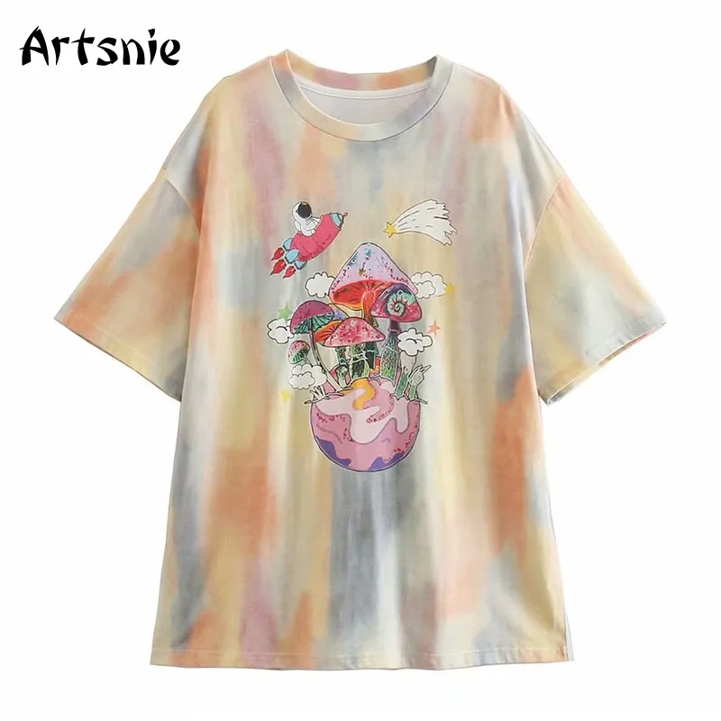 Женская трикотажная футболка Artsnie, с круглым вырезом и коротким рукавом, с мультипликационным принтом, лето 2021