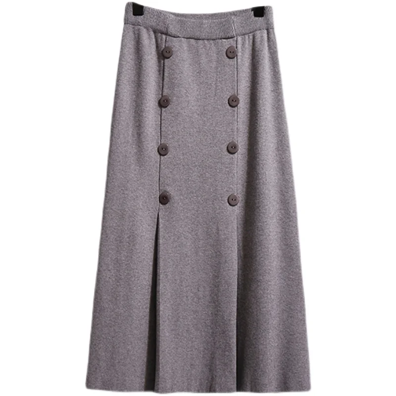 Женская трикотажная юбка, однотонная черная винтажная юбка большого размера, модель D0667 на весну/Осень/зиму, 2021