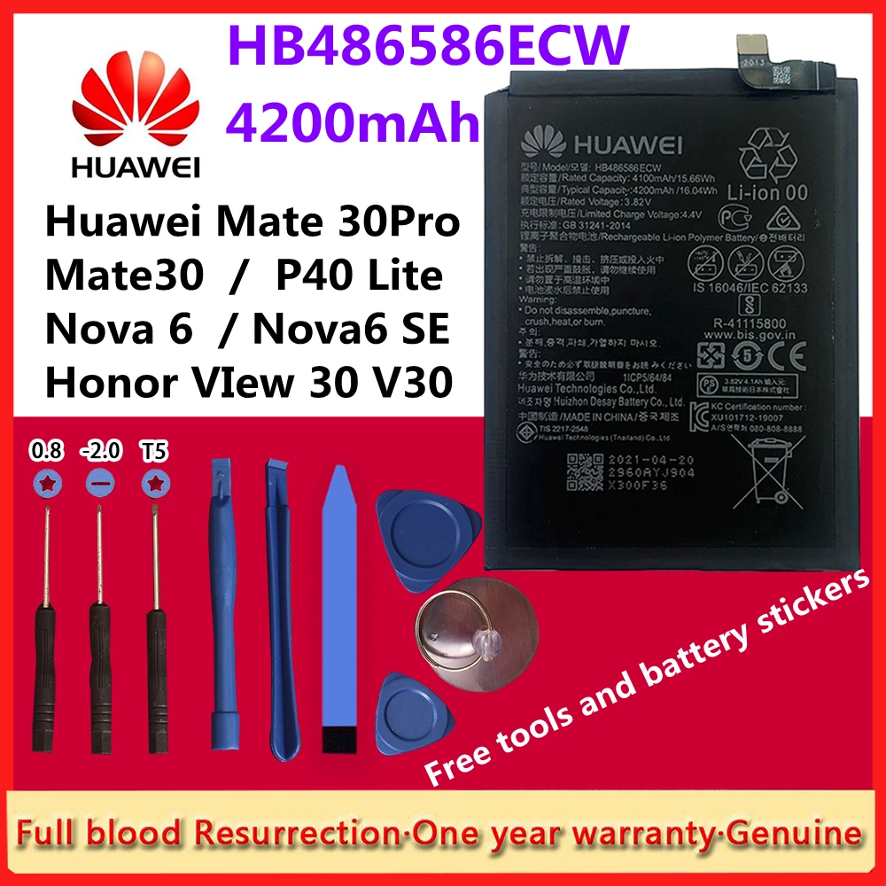 Original 4200mAh HB486586ECW Replacement Mobile Phone Battery for Huawei Mate 30 Mate30 Pro Nova 6 Nova6 SE / Honor VIew 30 V30