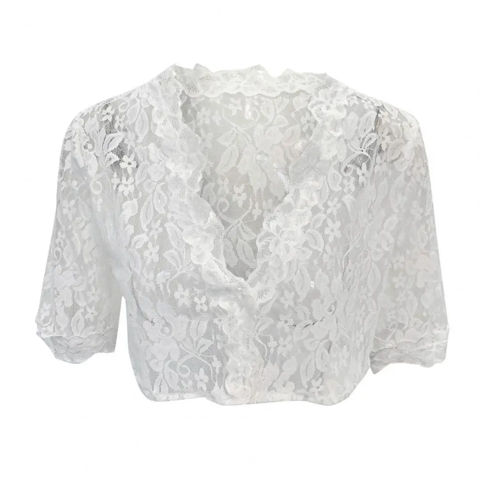 Женская укороченная блузка с цветочной вышивкой, кружевом и V-образным вырезом