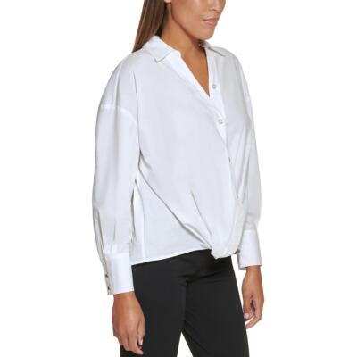 Женская укороченная рубашка на пуговицах с острым воротником DKNY Petites BHFO 9894, Linen white