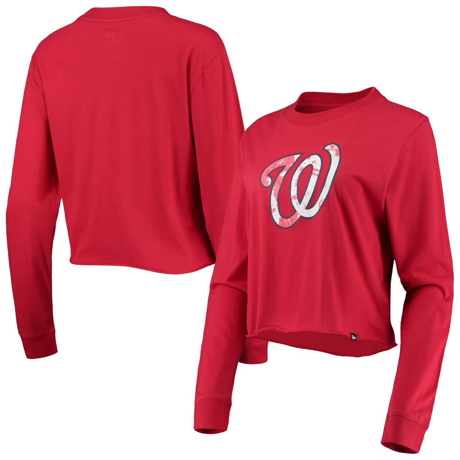 Женская укороченная футболка с длинными рукавами из детского трикотажа New Era Red Washington Nationals New Era
