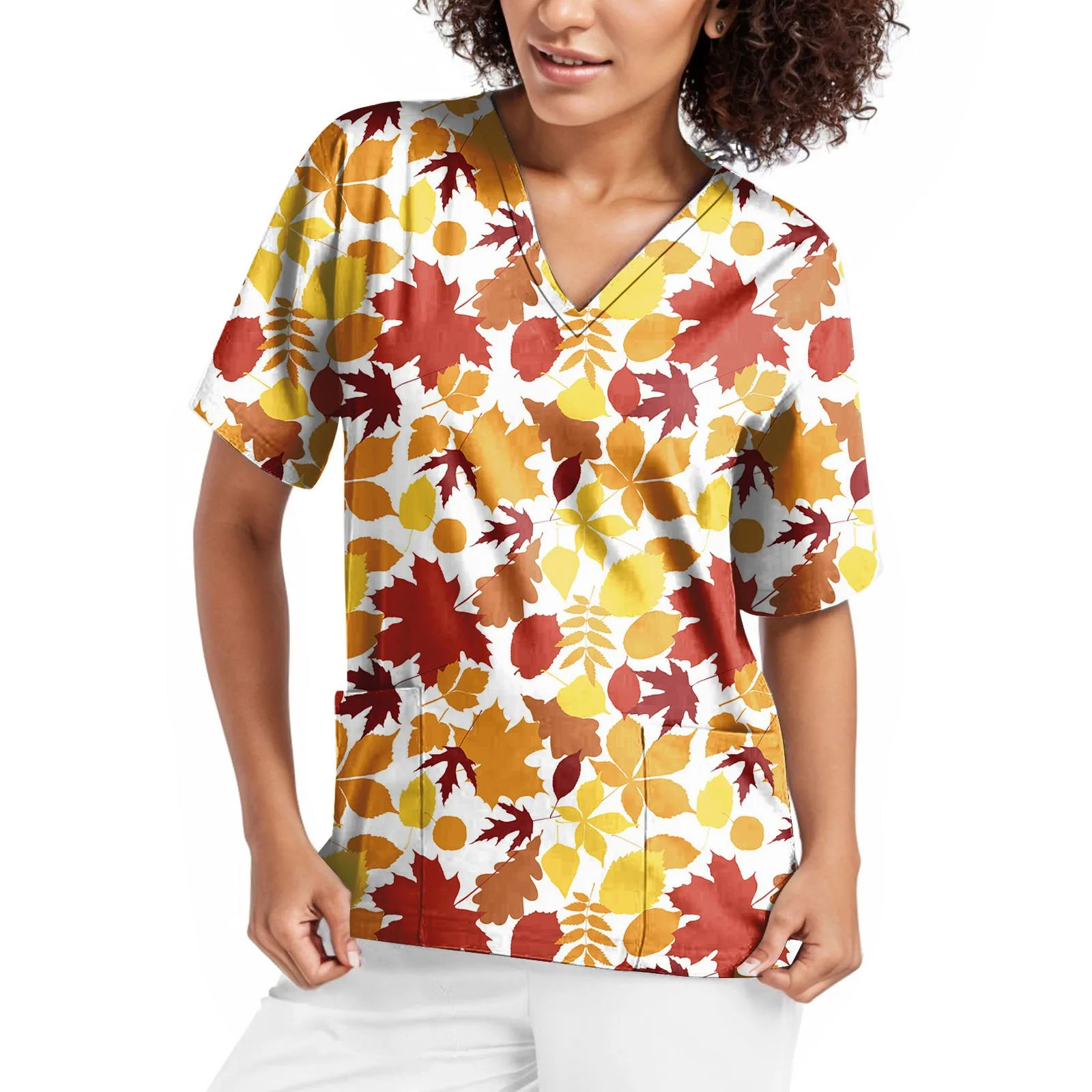 Женская униформа медсестры на День Благодарения, графические скрабы, топы, медицинская хирургическая униформа, униформа для женщин, медицинский врач