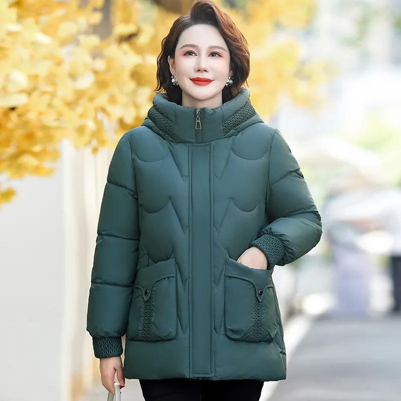 Женская утолщенная куртка с хлопковой набивкой, осенне-зимняя куртка для мамы, модная зимняя куртка с хлопковой набивкой в западном стиле L зелёный