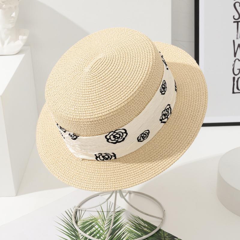 Женская федора: Соломенная шляпа от солнца с пляжным узором для весны и лета Adjustable (54-59cm) грязно-белый