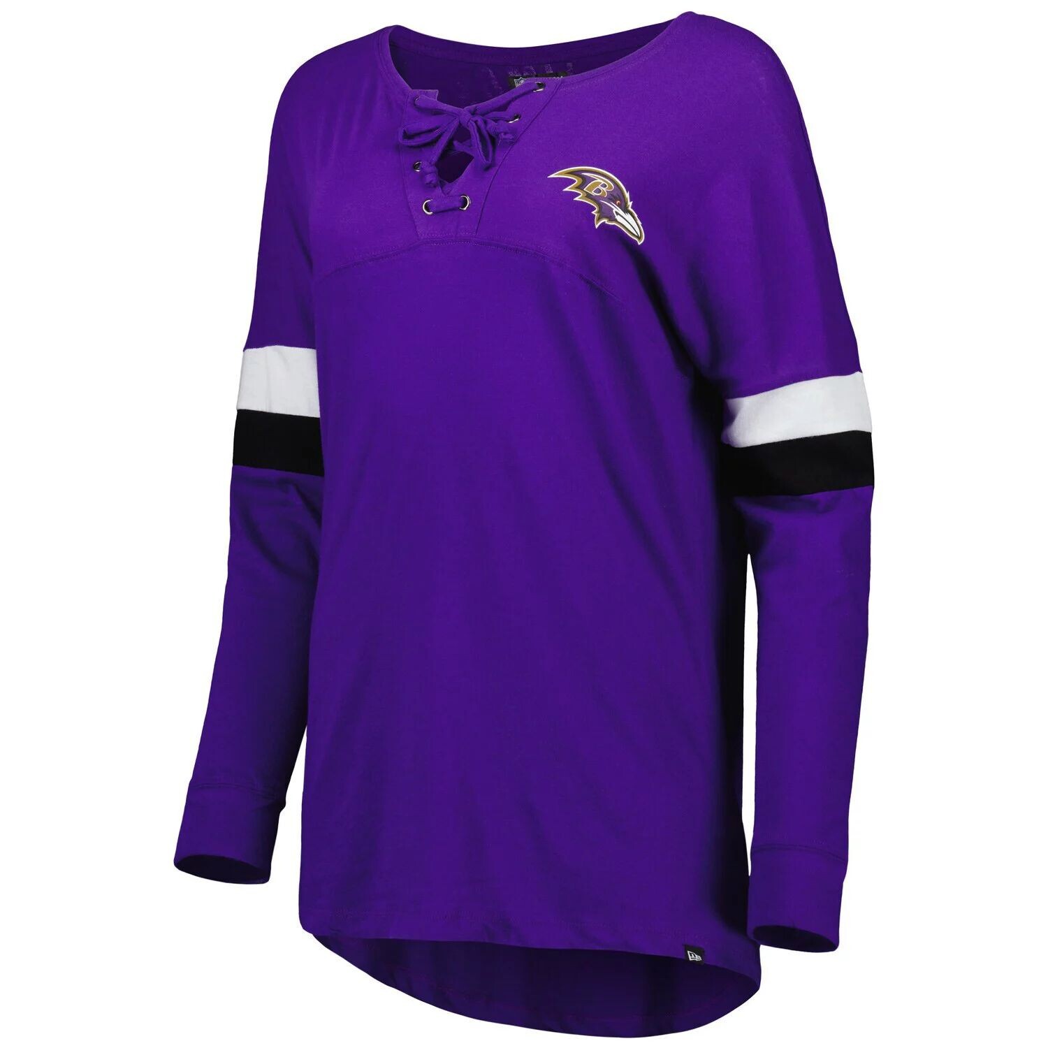 Женская фиолетовая футболка New Era Baltimore Ravens Athletic Varsity со шнуровкой и длинными рукавами New Era, Фиолетовый, Женская фиолетовая футболка New Era Baltimore Ravens Athletic Varsity со шнуровкой и длинными рукавами New Era
