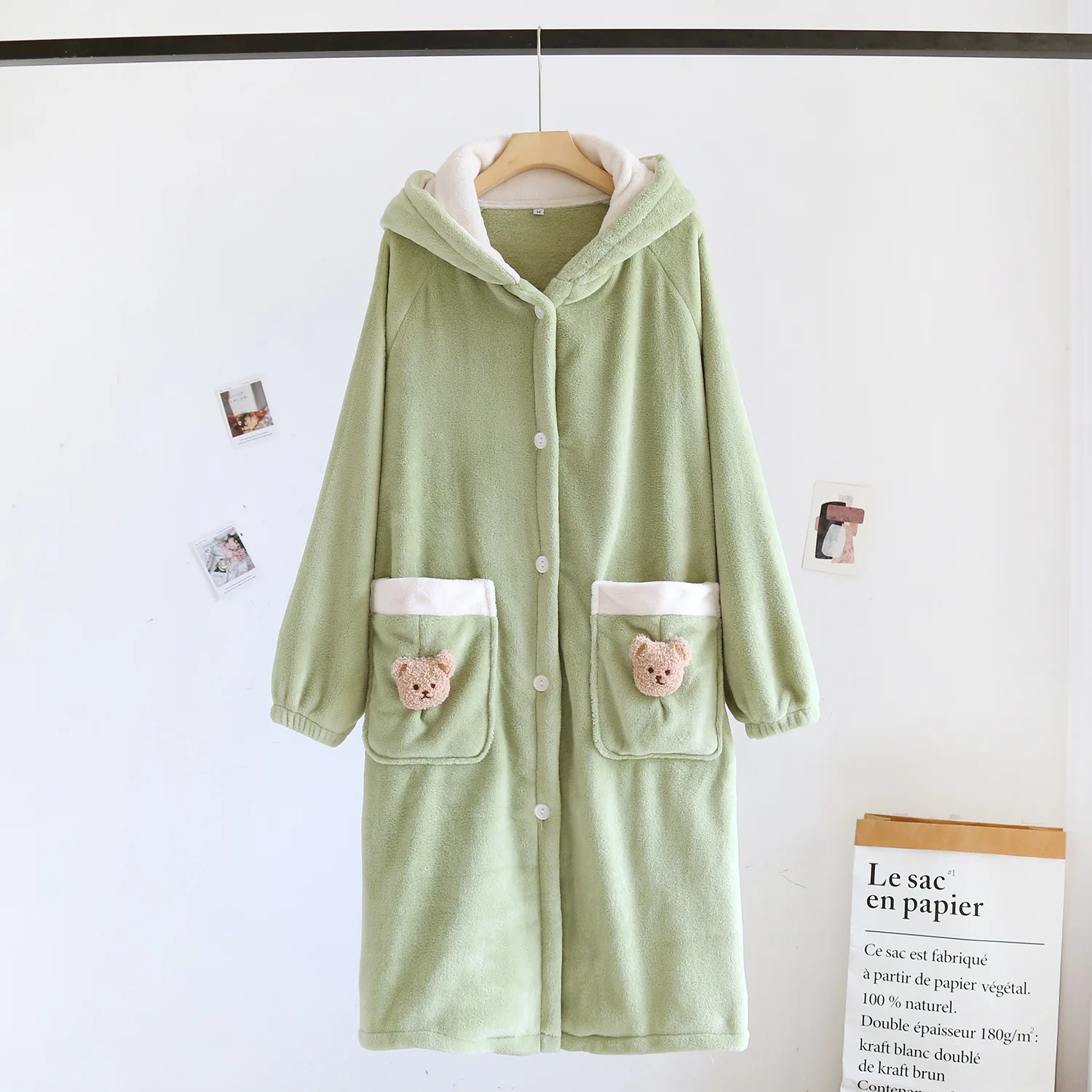 Женская фланелевая однобортная ночная рубашка-кимоно с карманами