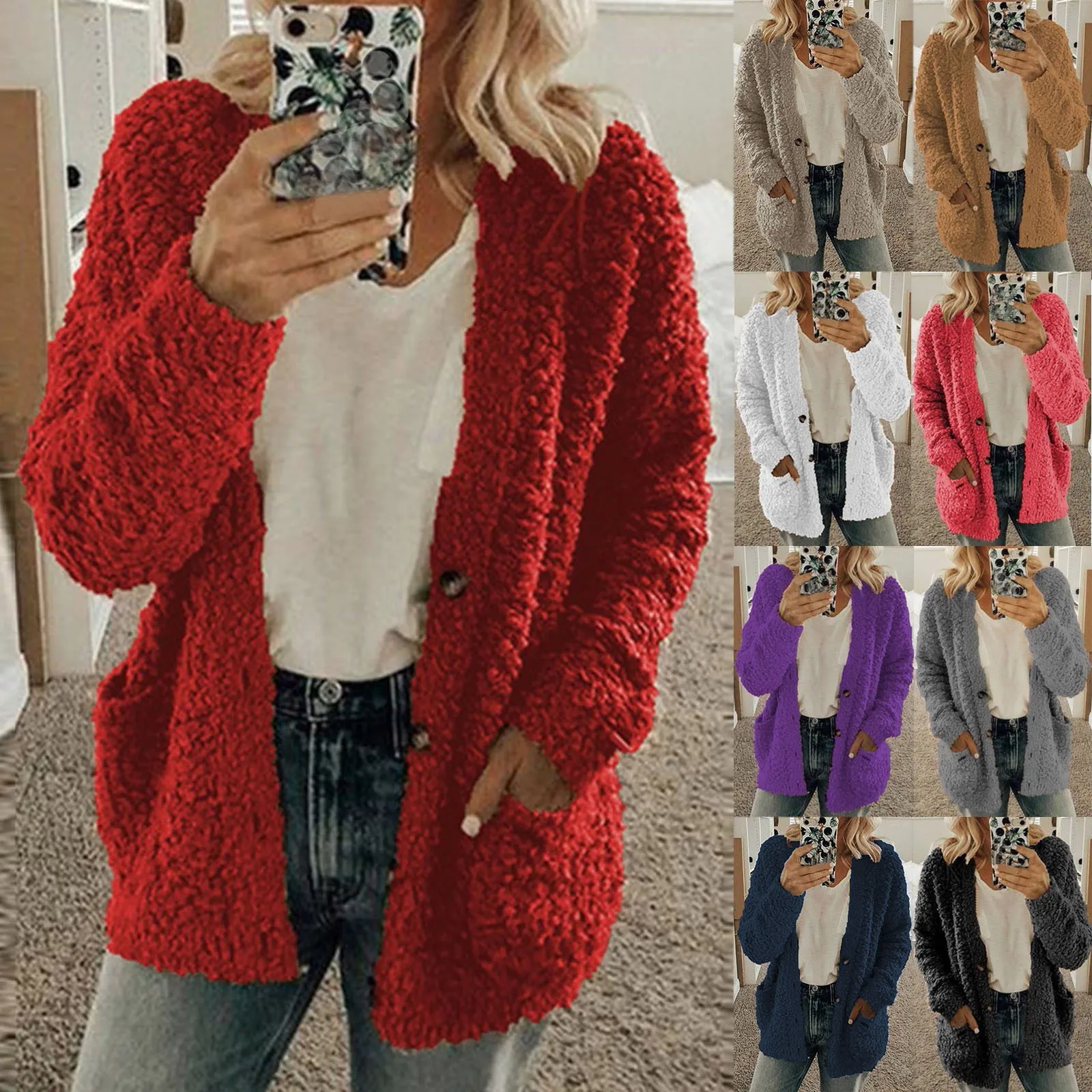 Женская флисовая куртка с капюшоном, теплый шерстяной кардиган с длинным рукавом, зима 2023