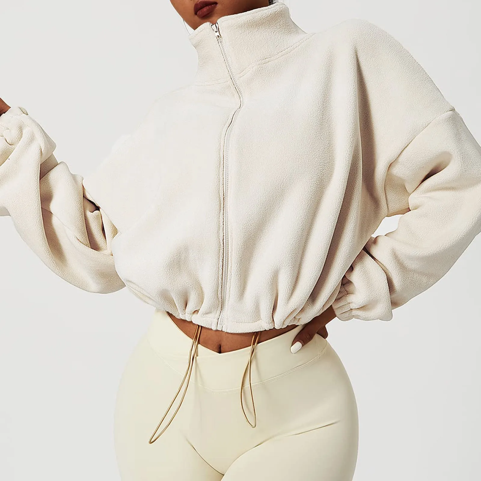 Женская флисовая толстовка на завязках, однотонная укороченная куртка на молнии, зимнее пальто с длинным рукавом и воротником-стойкой, тренировочное пальто, наряд
