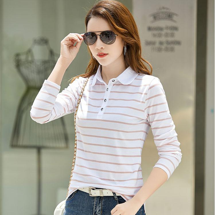 Женская футболка Весна и Осень Новая Модная Футболка С Длинным Рукавом Полосатый Топ Отложной Воротник Базовая Рубашка Хлопок Водолазка Топ XXXXL розовый