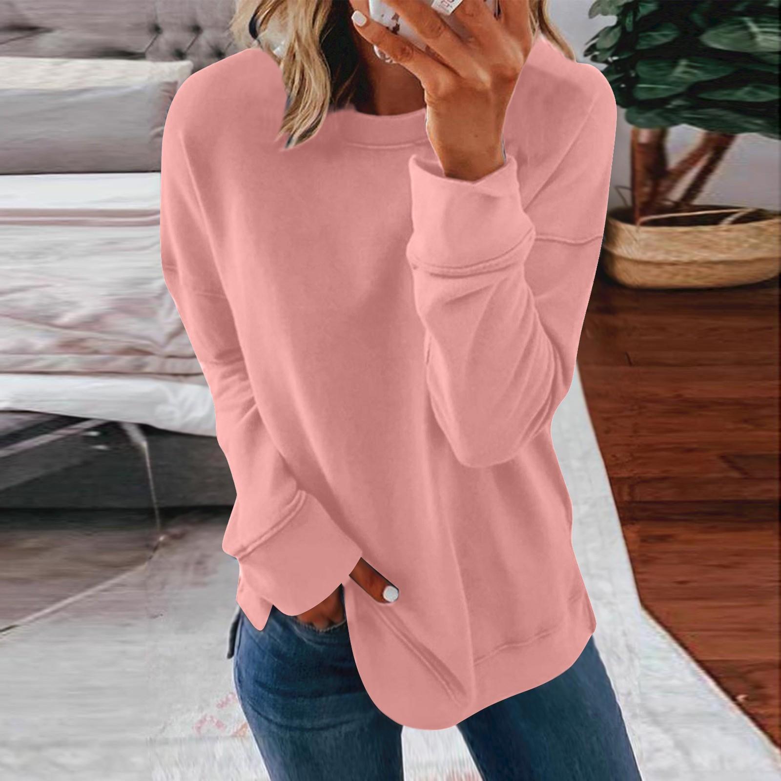 Женская футболка Модная повседневная однотонная футболка с круглым вырезом и длинным рукавом XXXXL розовый