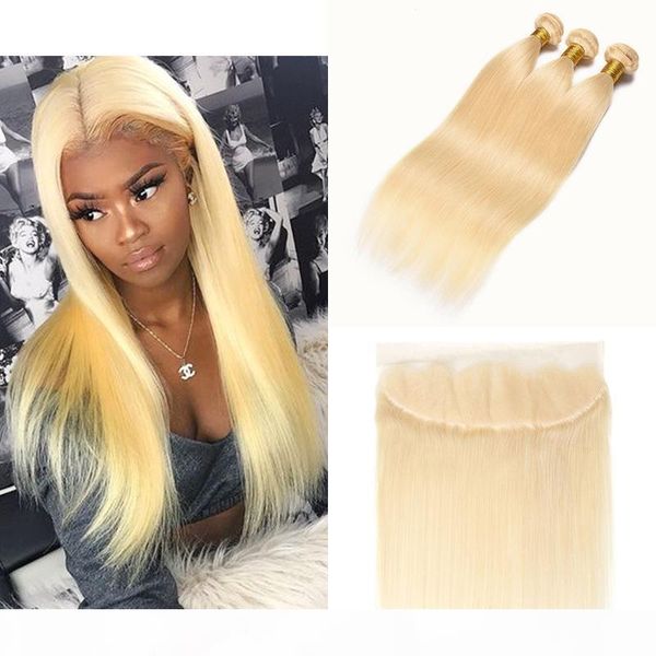 cuticle aligned 613 hair blonde straight frontal with bundles unprocessed brazilian human hair 3 wefts with 13x4 lace frontal 10, Black;brown