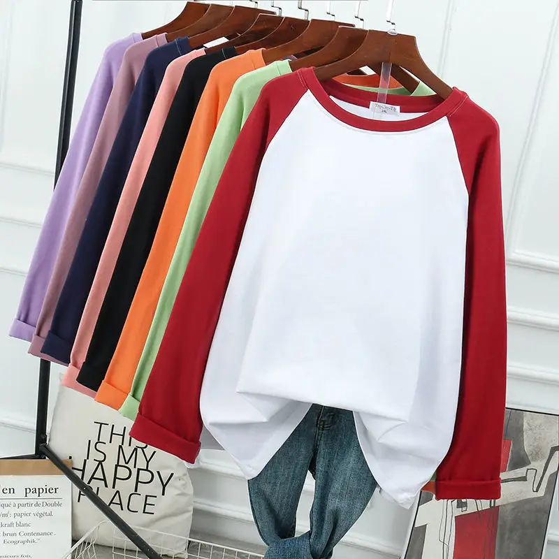 Женская футболка в стиле Харадзюку, свободная Универсальная футболка с круглым вырезом и длинными рукавами, в Корейском стиле, весна-осень ...