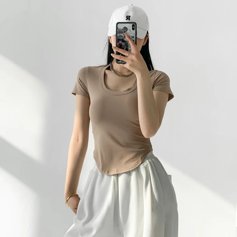 Женская футболка из органического хлопка с коротким рукавом и изогнутым подолом