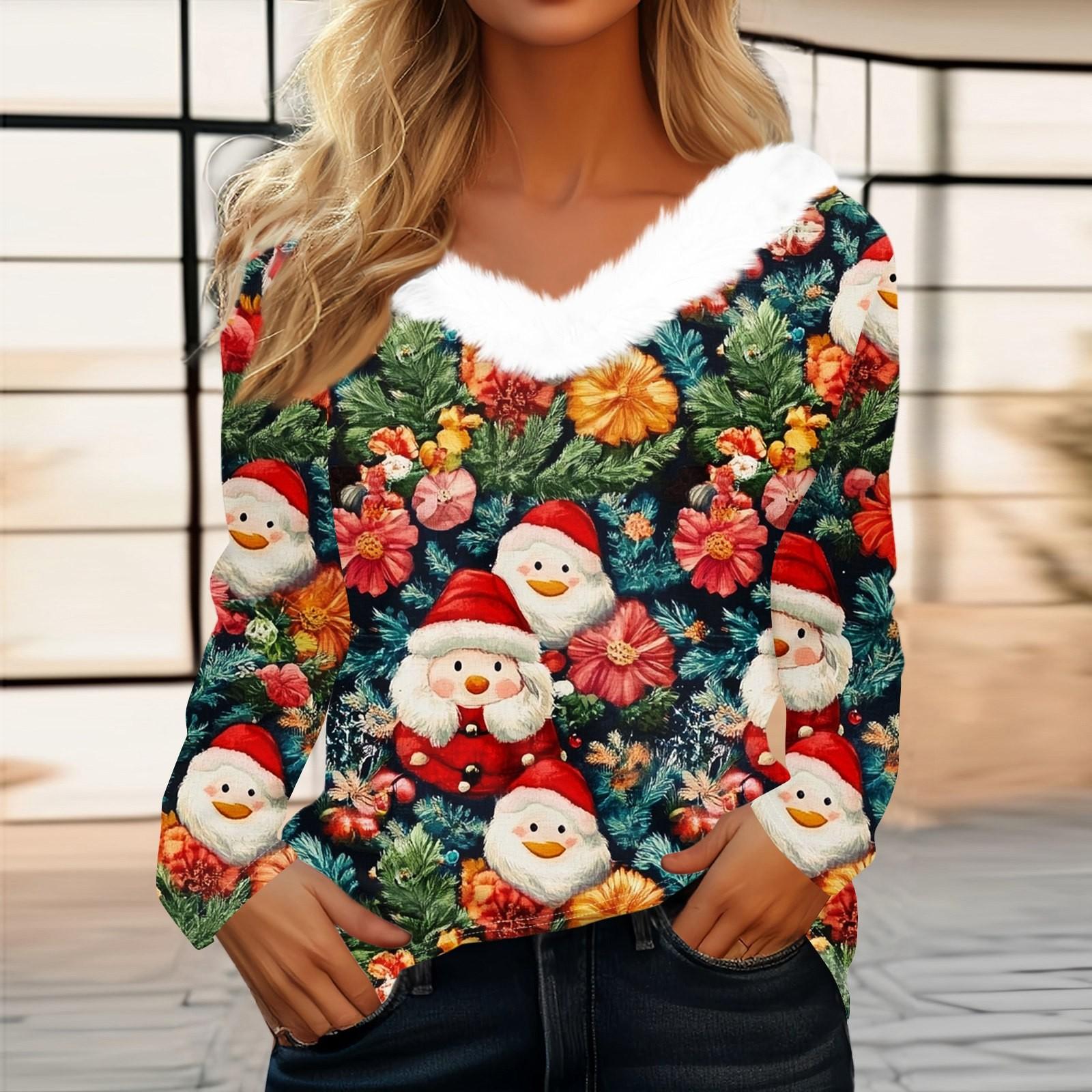 Женская футболка, модная повседневная футболка с длинным рукавом и принтом, флисовый воротник, V-образный вырез XXXL зелёный