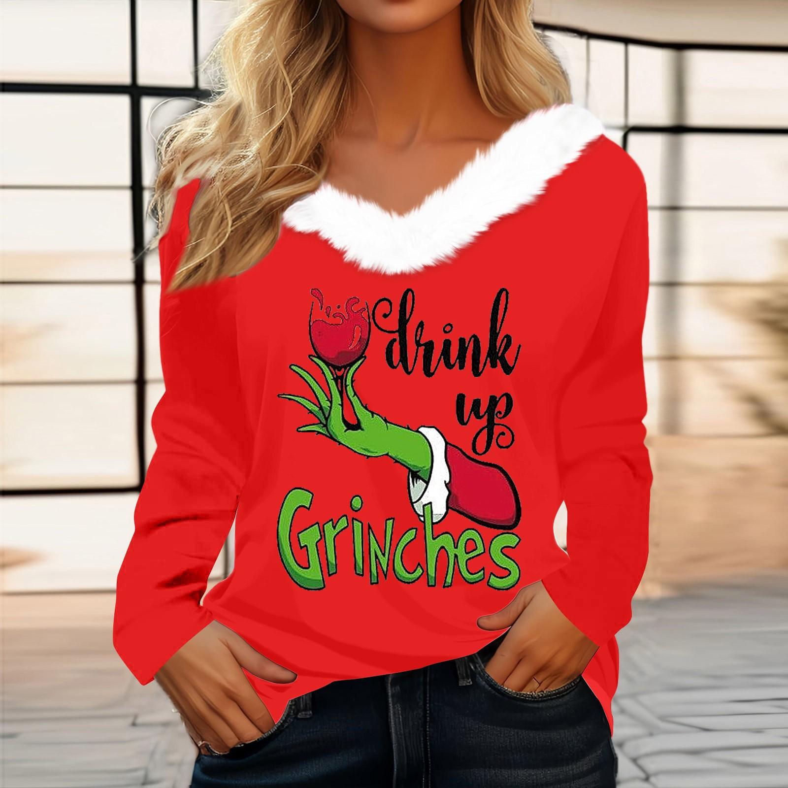 Женская футболка, рождественская рубашка с длинным рукавом, вечерние, рождественский флисовый воротник, топ с v-образным вырезом XL винный