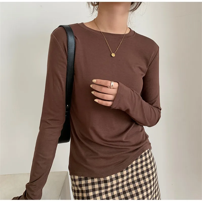 Женская футболка, сезон осень 2020, популярные женские футболки, однотонные тонкие облегающие Модные майки из модала с круглым вырезом, подхо...