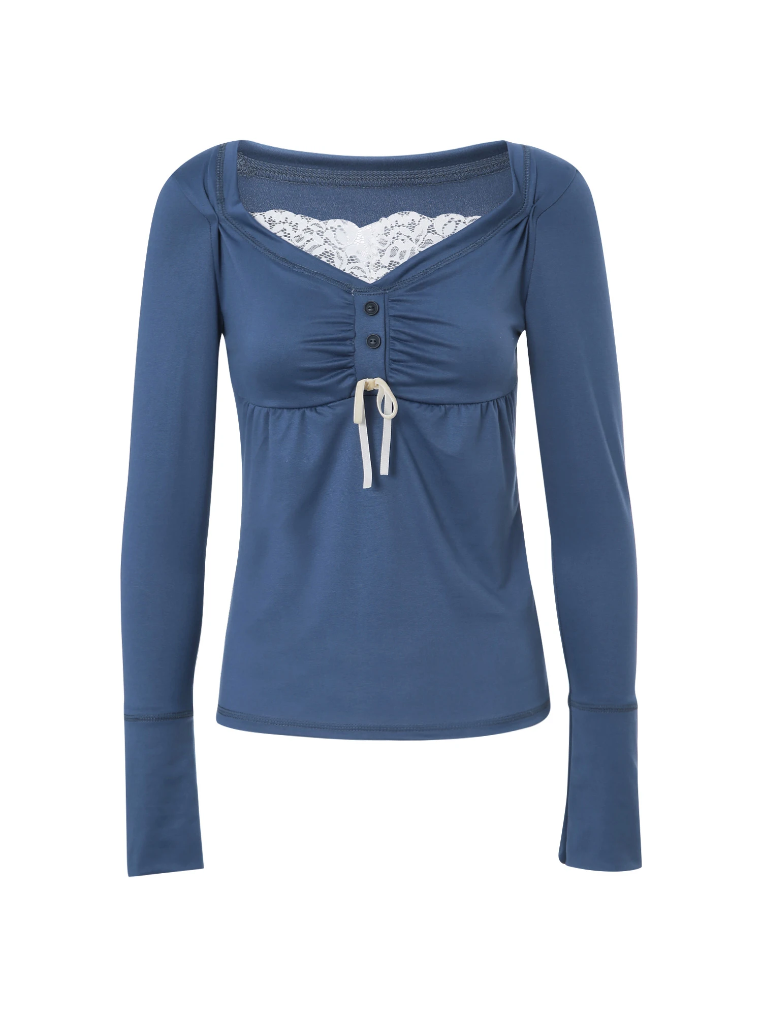 Женская футболка с длинным рукавом, бантом спереди и U-образным вырезом