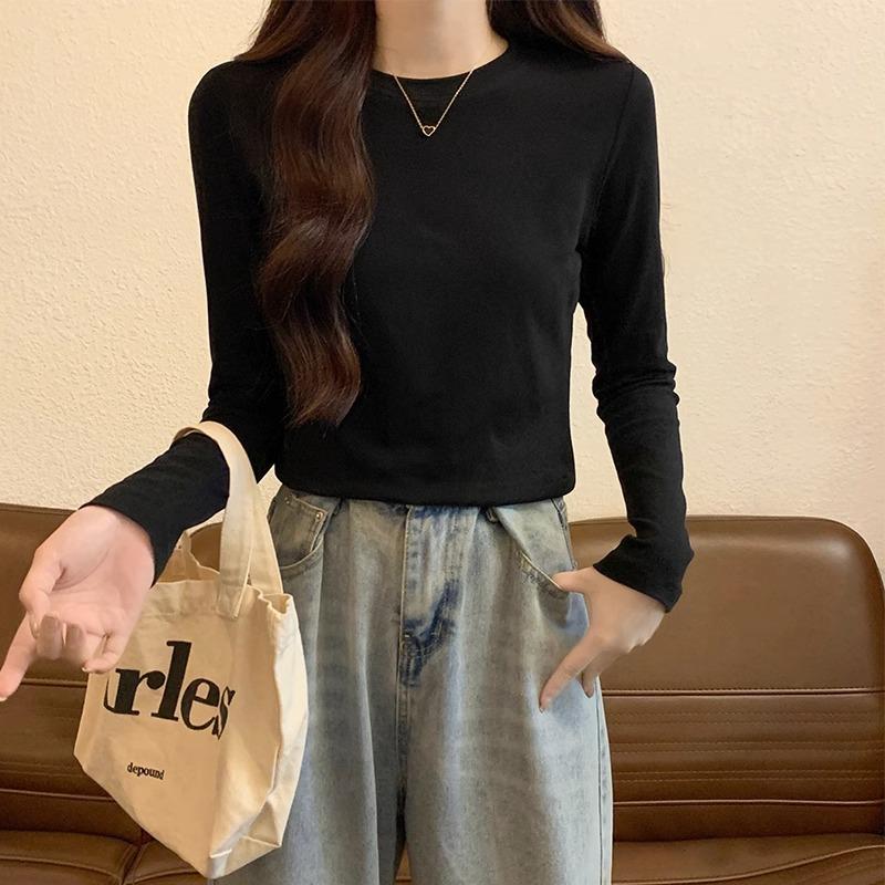 Женская футболка с длинным рукавом из чистого хлопка, эластичная облегающая с круглым вырезом, простая и универсальная осенне-зимняя базовая футболка XL