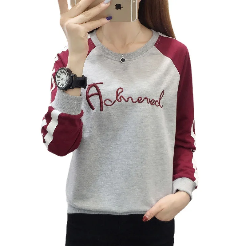 Женская футболка с длинным рукавом, круглым вырезом и вышивкой, из 50% хлопка