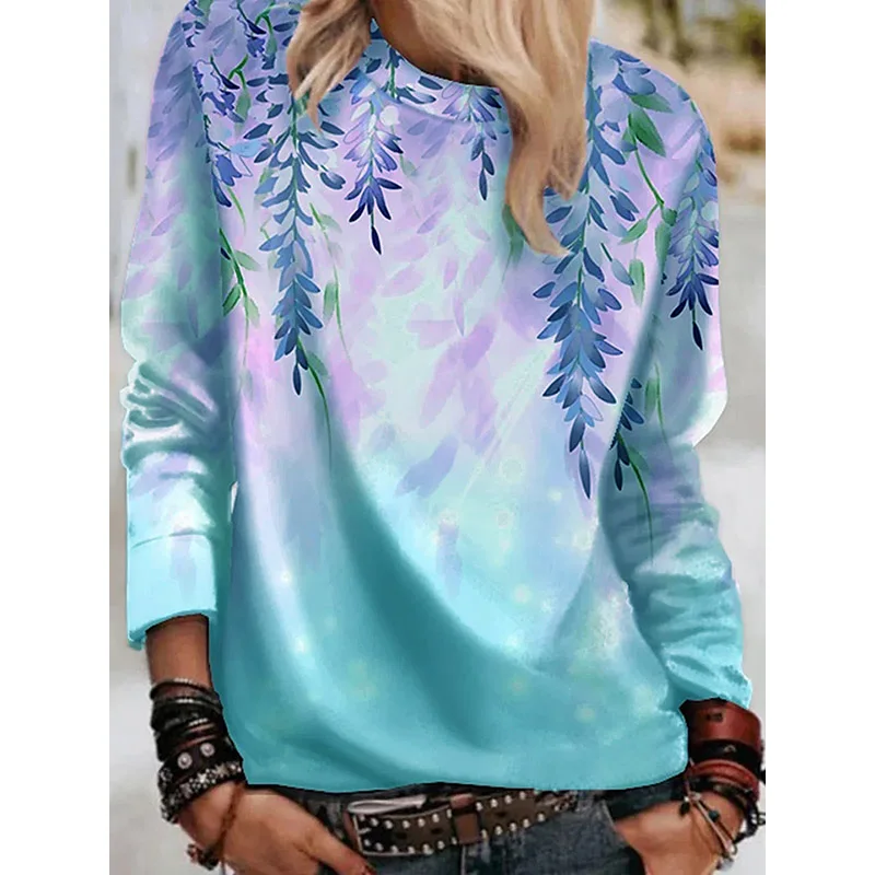 Женская футболка с длинным рукавом, круглым вырезом и графическим принтом